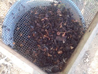 Si queremos, aunque es aconsejable, con una criba de 0,5x0,5 podremos separar el compost fino de los restos que aún no se han descompuesto y que se devolverán a la compostera.