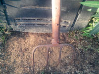 Para poder mover toda la materia que vamos echando a la compostadora es esencial tener una horca para moverla a nuestro antojo.