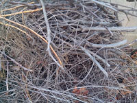 Si durante la época de invierno hemos ido acumulando diversas podas y se han quedado secas se pueden ir mezclando con el resto para añadir carbono.