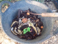Los restos que como hemos dicho no se han descompuesto, ya que algunos son más fuertes que otros (no es lo mismo una cáscara de nuez o almendra que una de plátano o manzana) serán devueltos a la compostera para seguir su proceso.